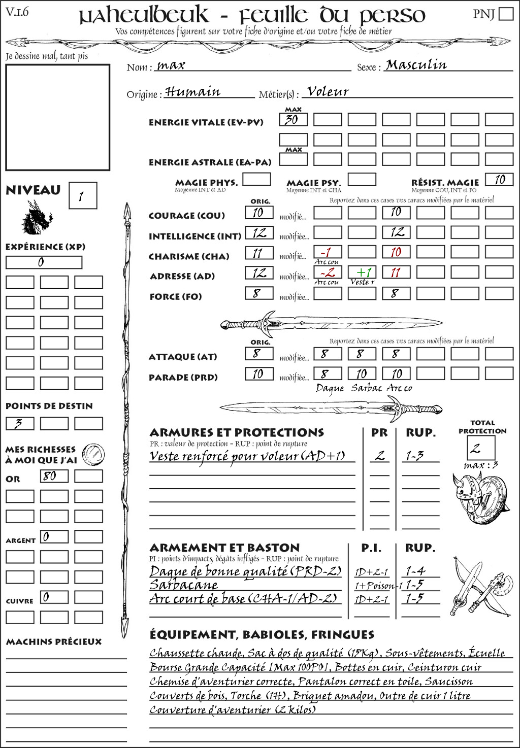Fiche de personnage