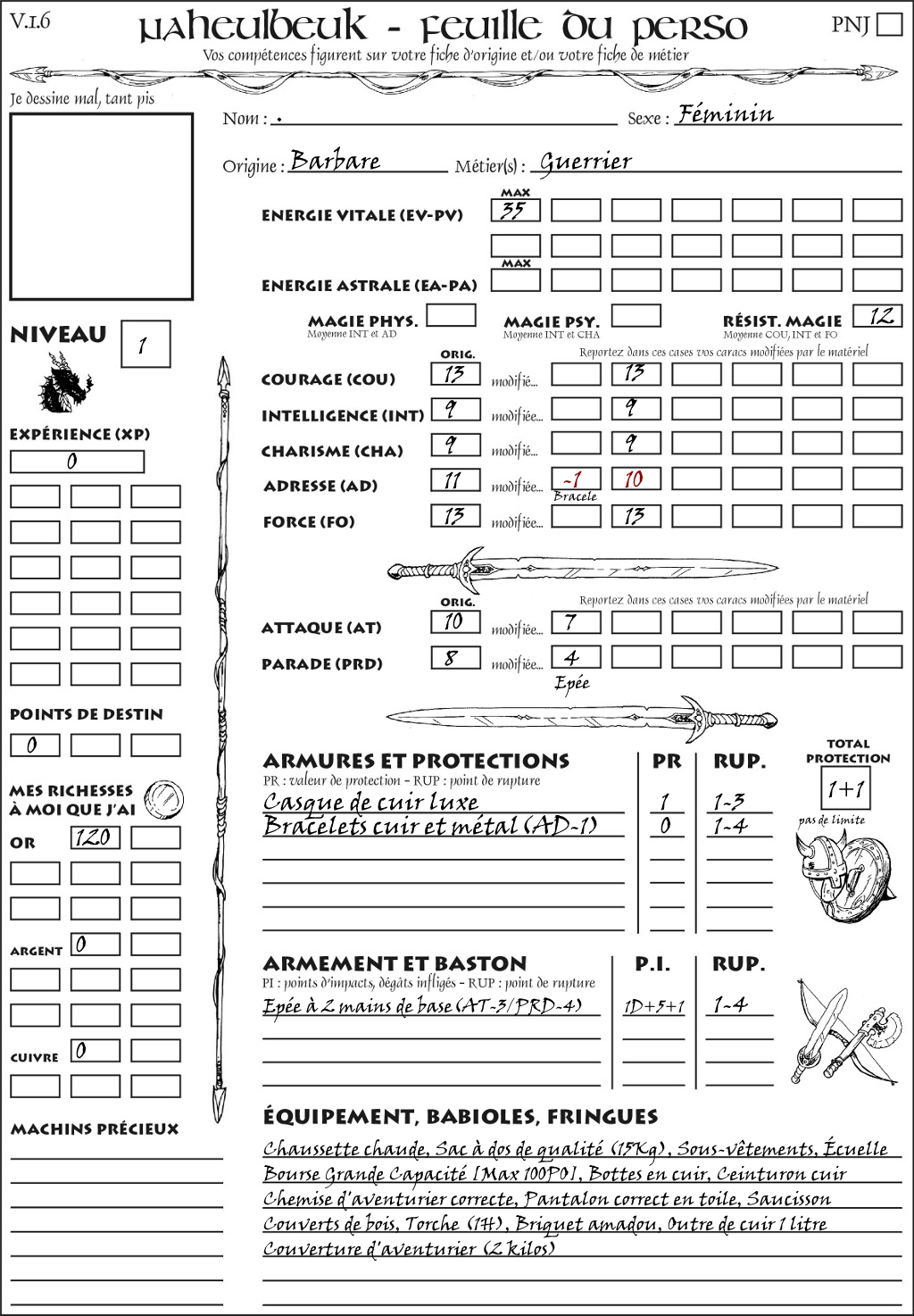 Fiche de personnage