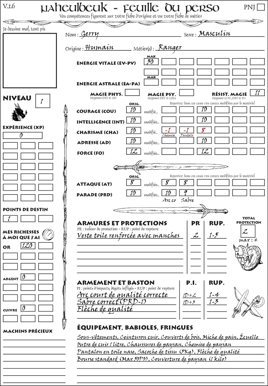 Fiche de personnage