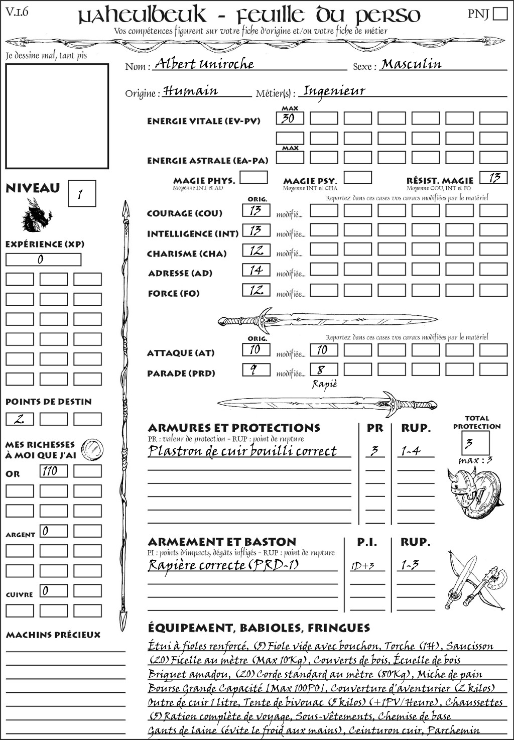 Fiche de personnage