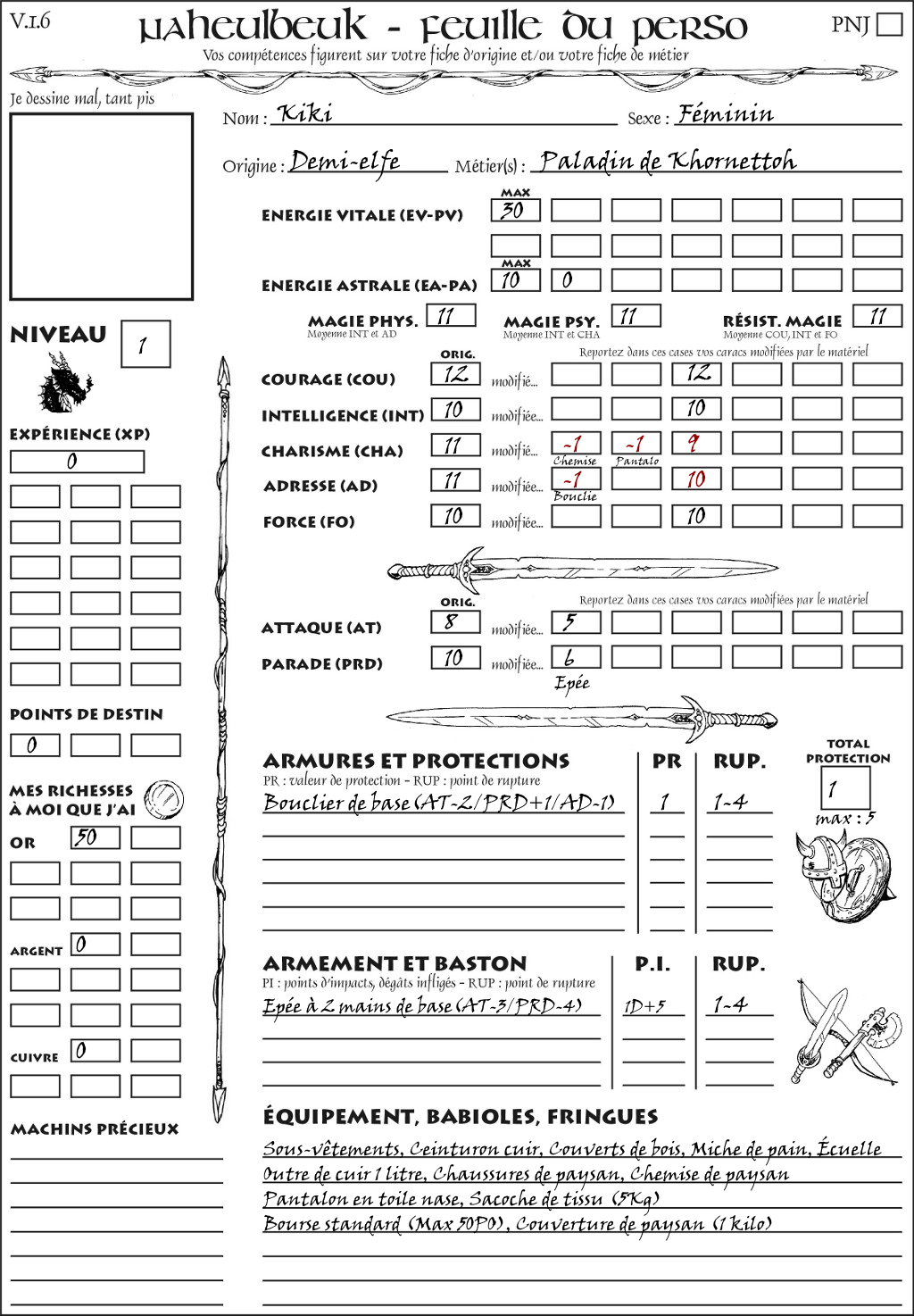 Fiche de personnage