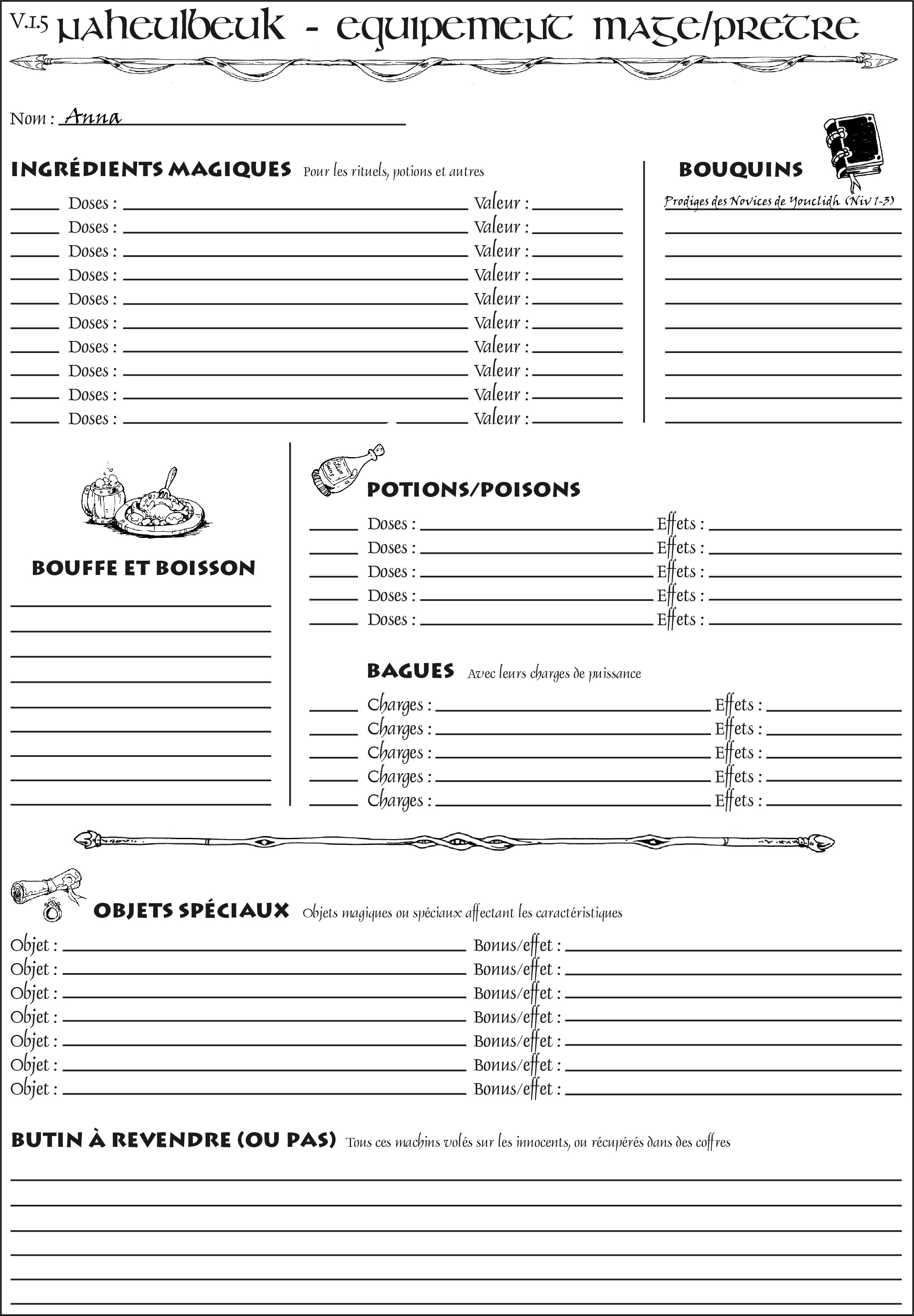 Fiche de personnage