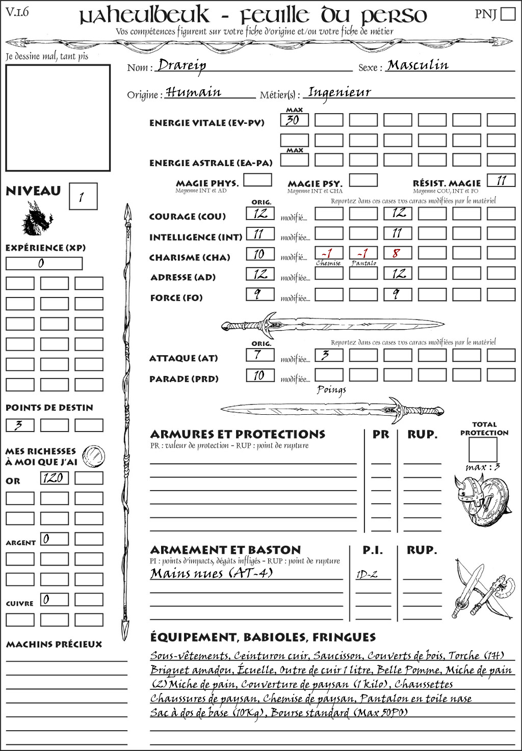 Fiche de personnage