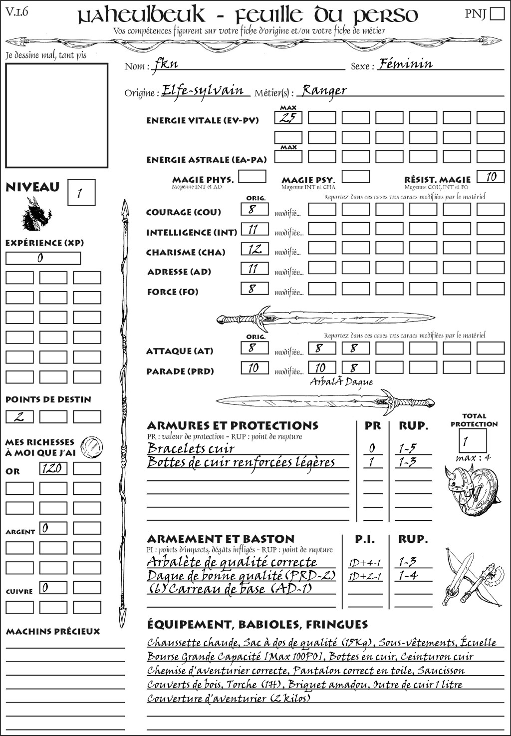 Fiche de personnage