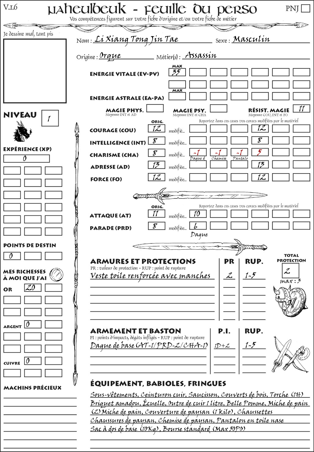 Fiche de personnage