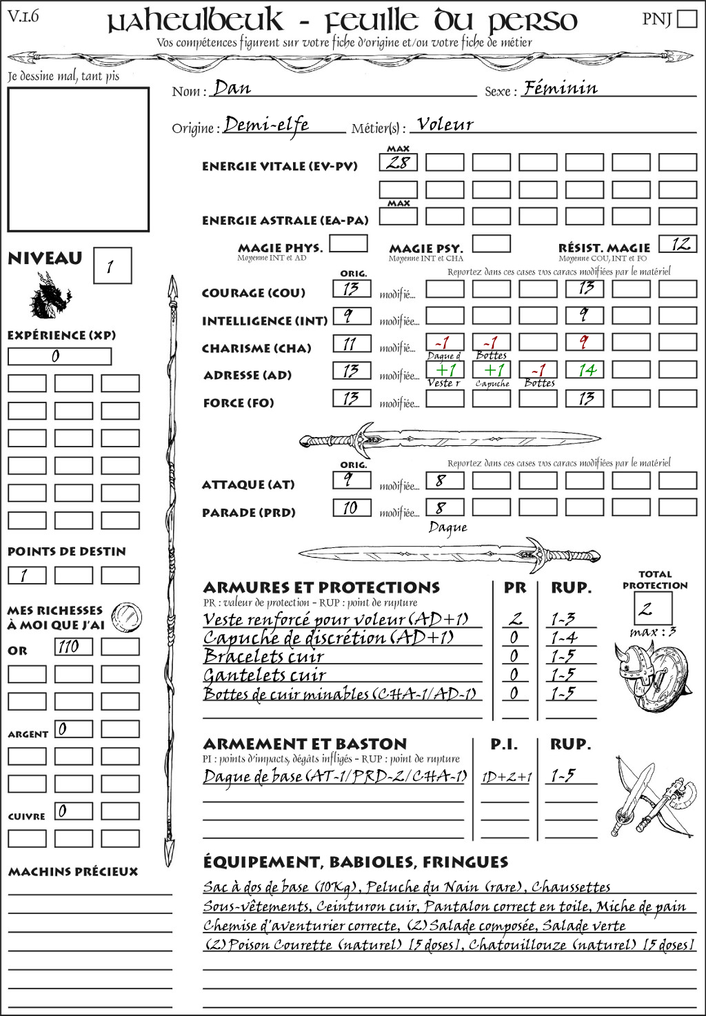 Fiche de personnage
