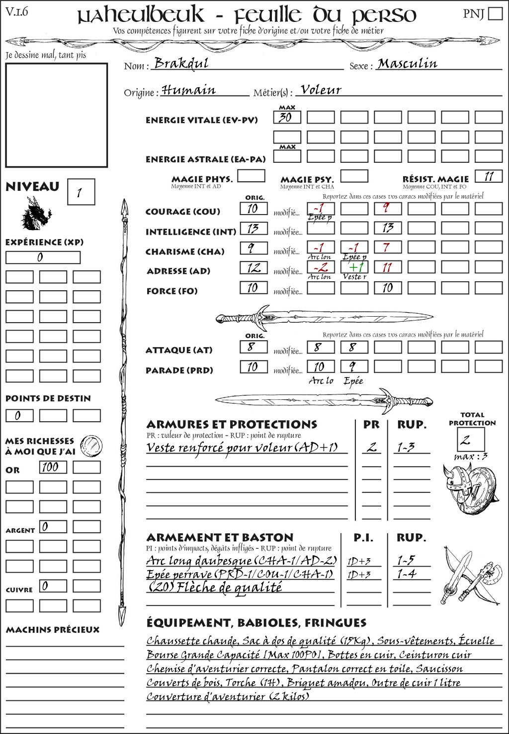 Fiche de personnage