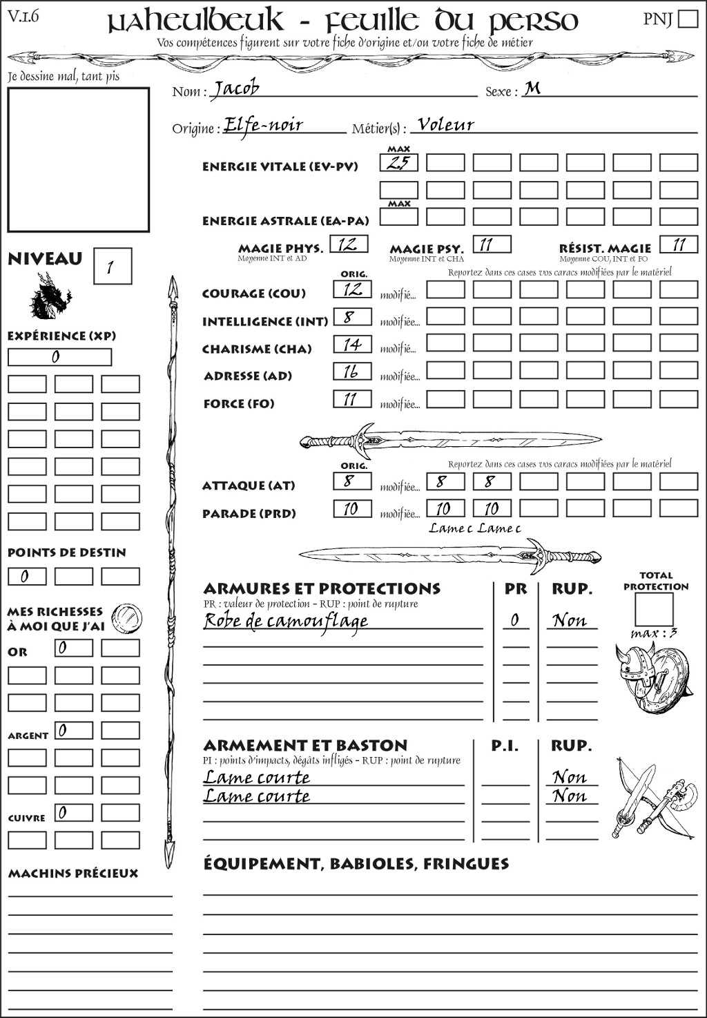 Fiche de personnage