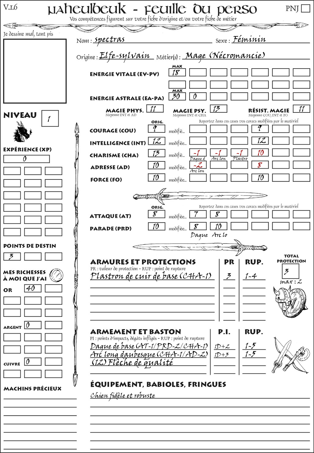 Fiche de personnage