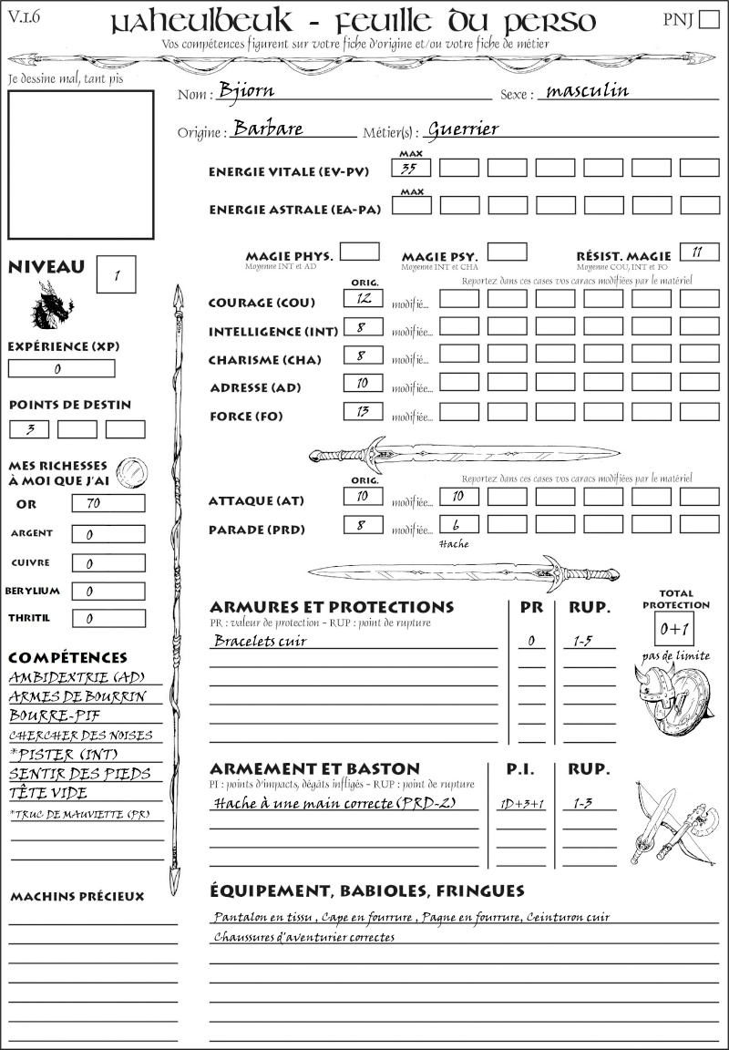 Fiche de personnage