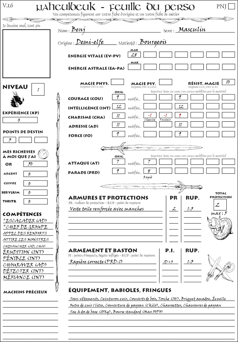 Fiche de personnage