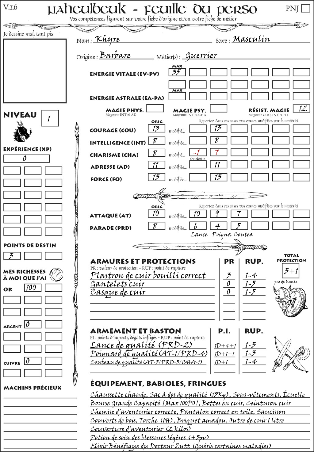 Fiche de personnage