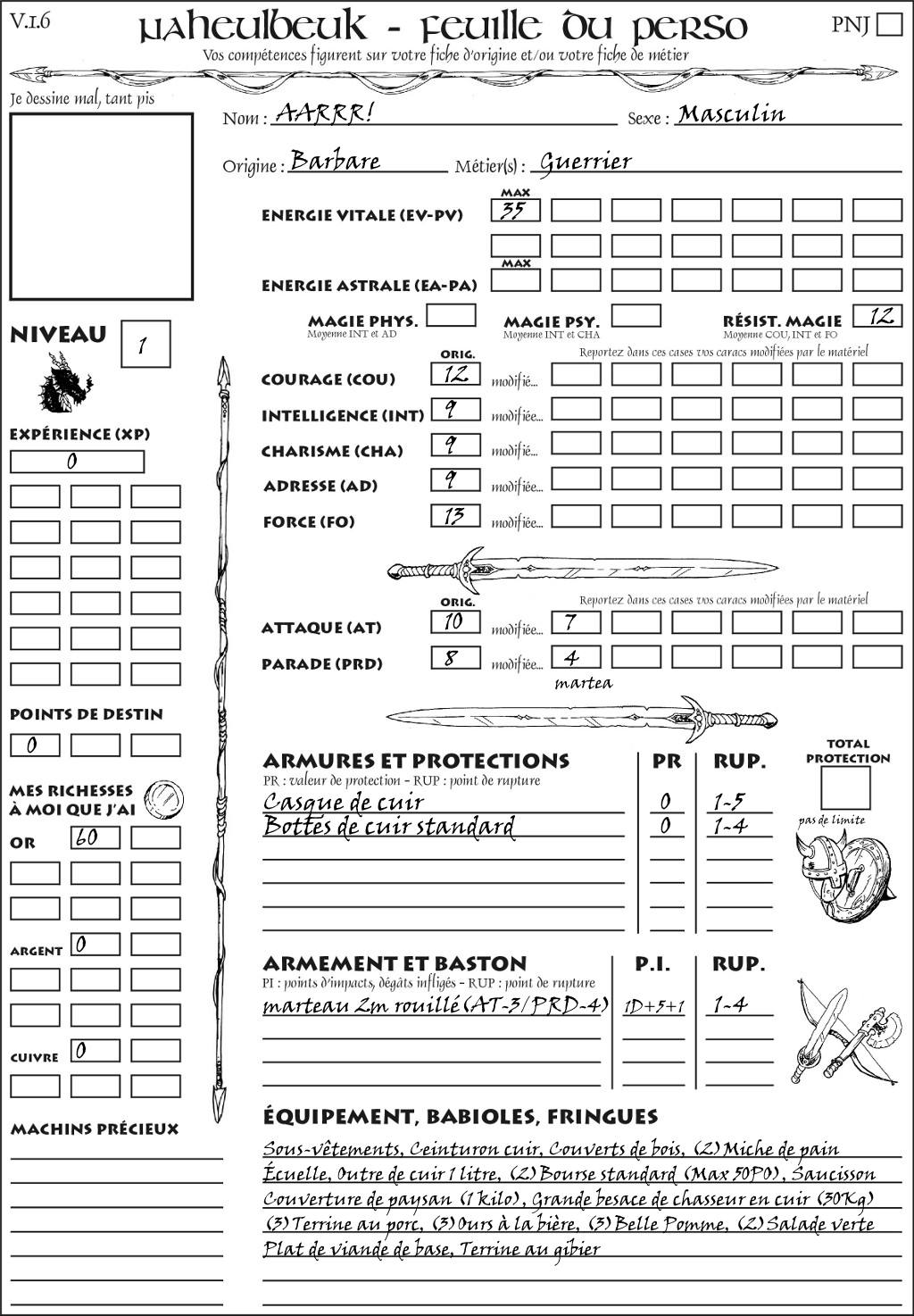 Fiche de personnage