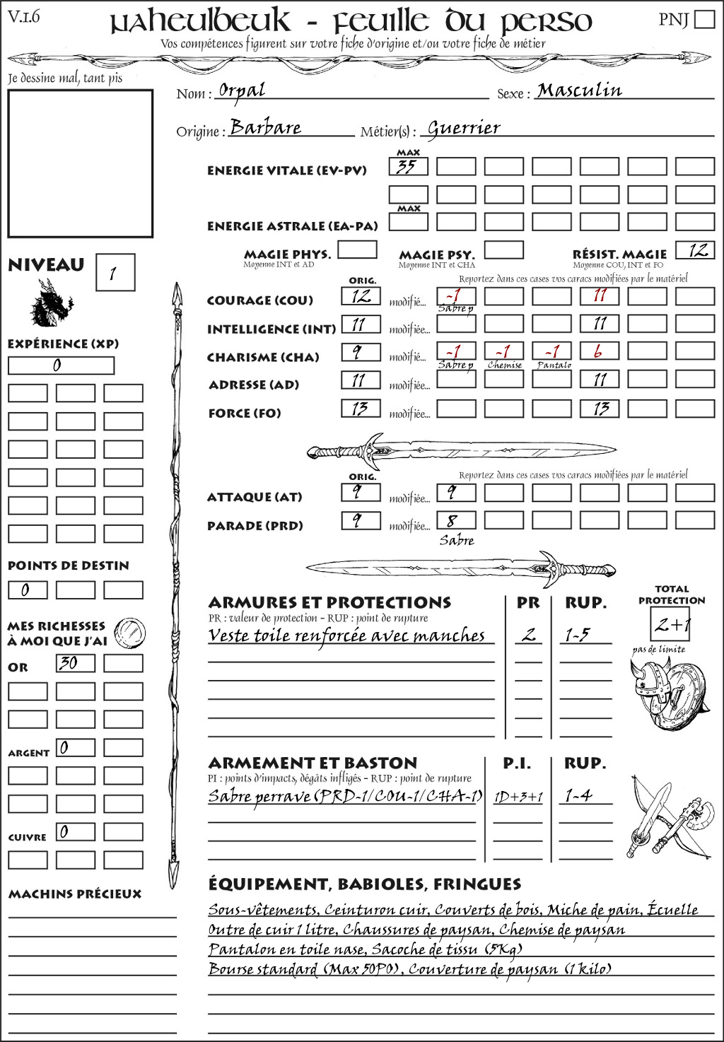 Fiche de personnage