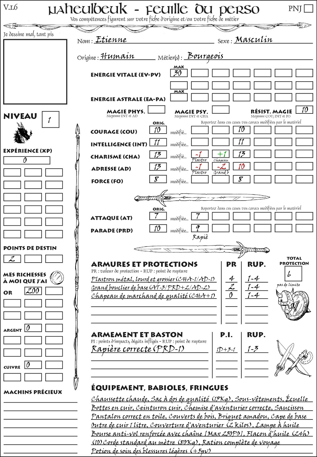 Fiche de personnage