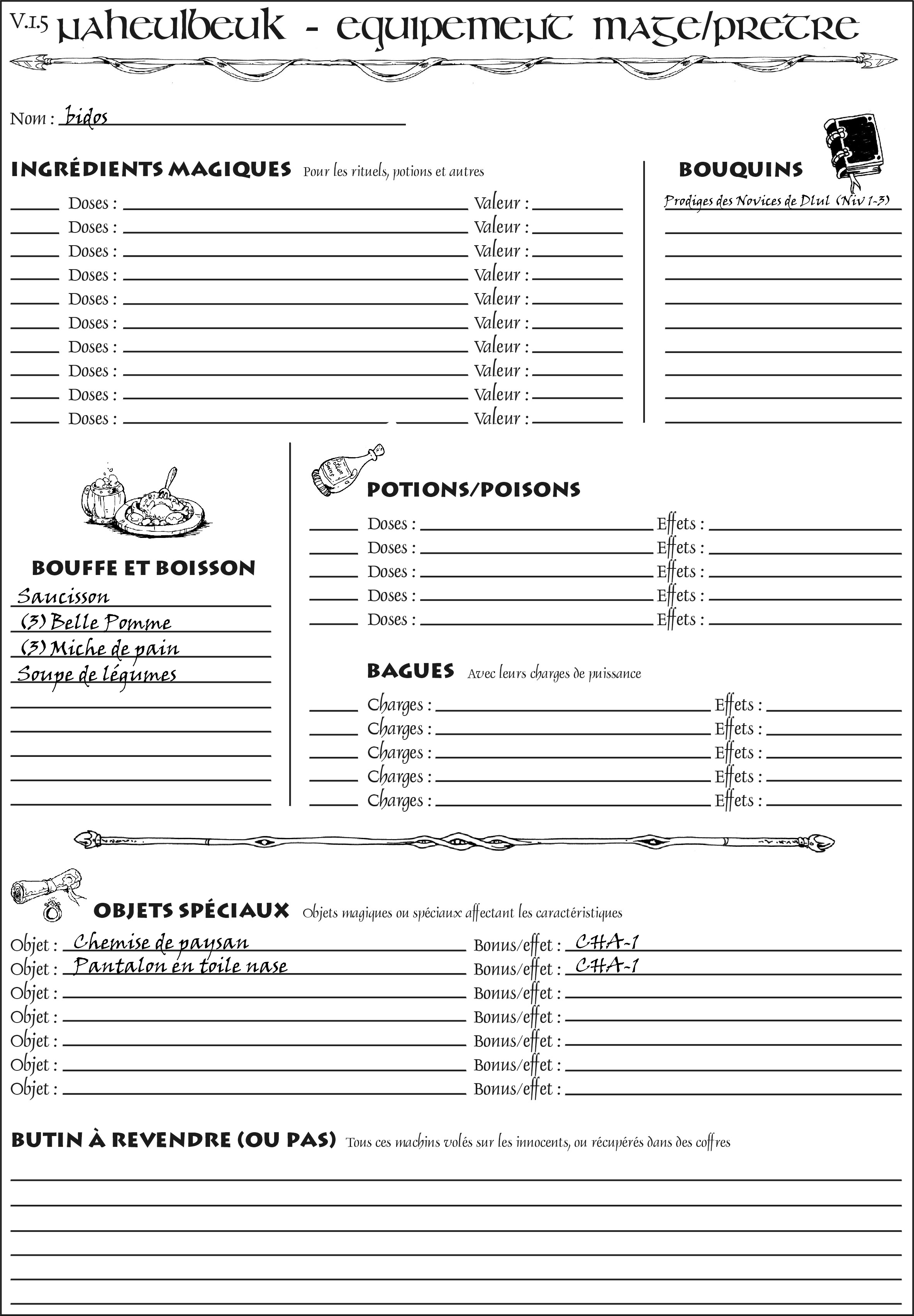 Fiche de personnage