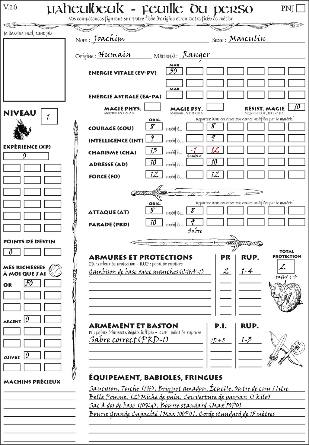 Fiche de personnage