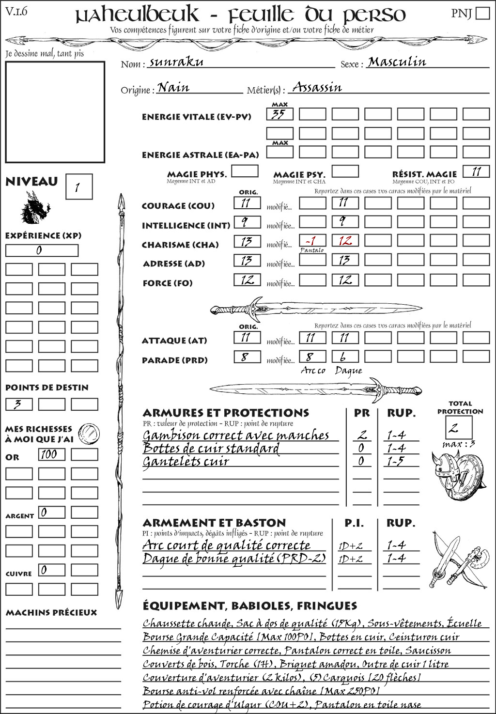 Fiche de personnage