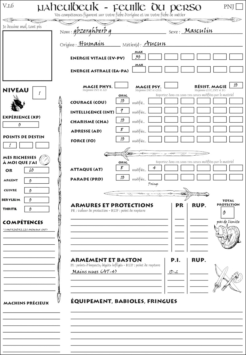 Fiche de personnage