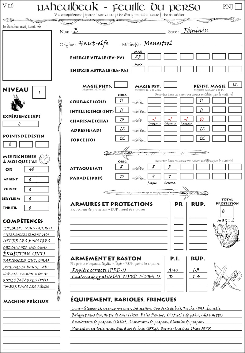 Fiche de personnage