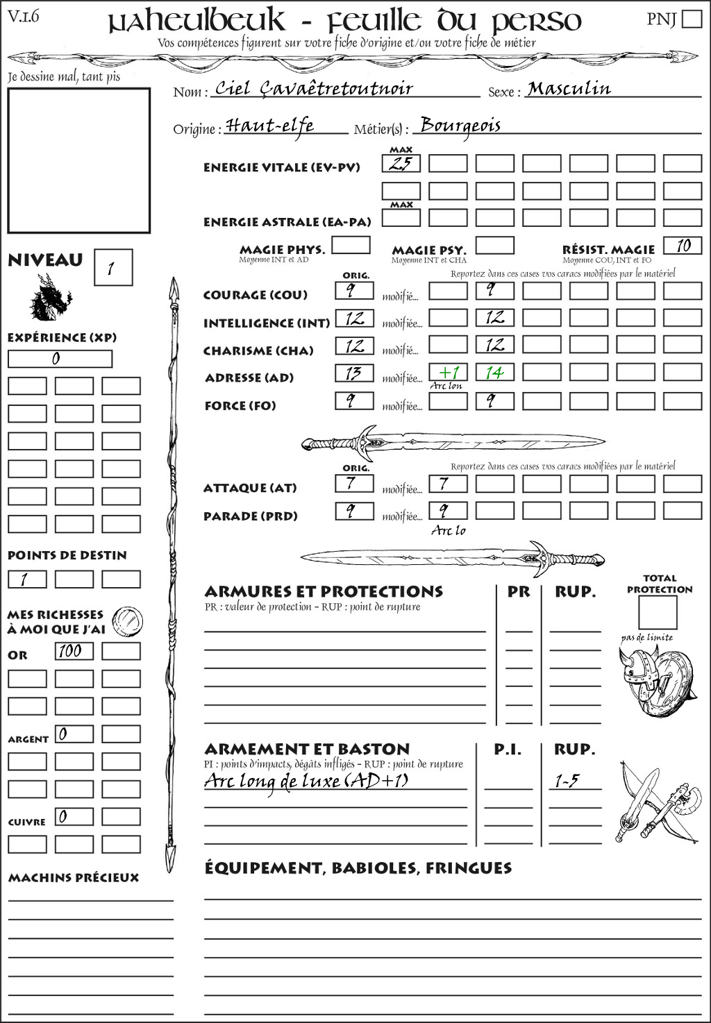 Fiche de personnage