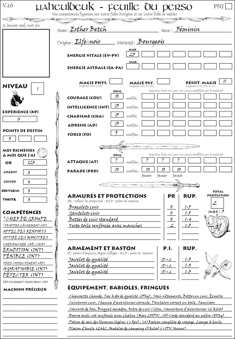 Fiche de personnage