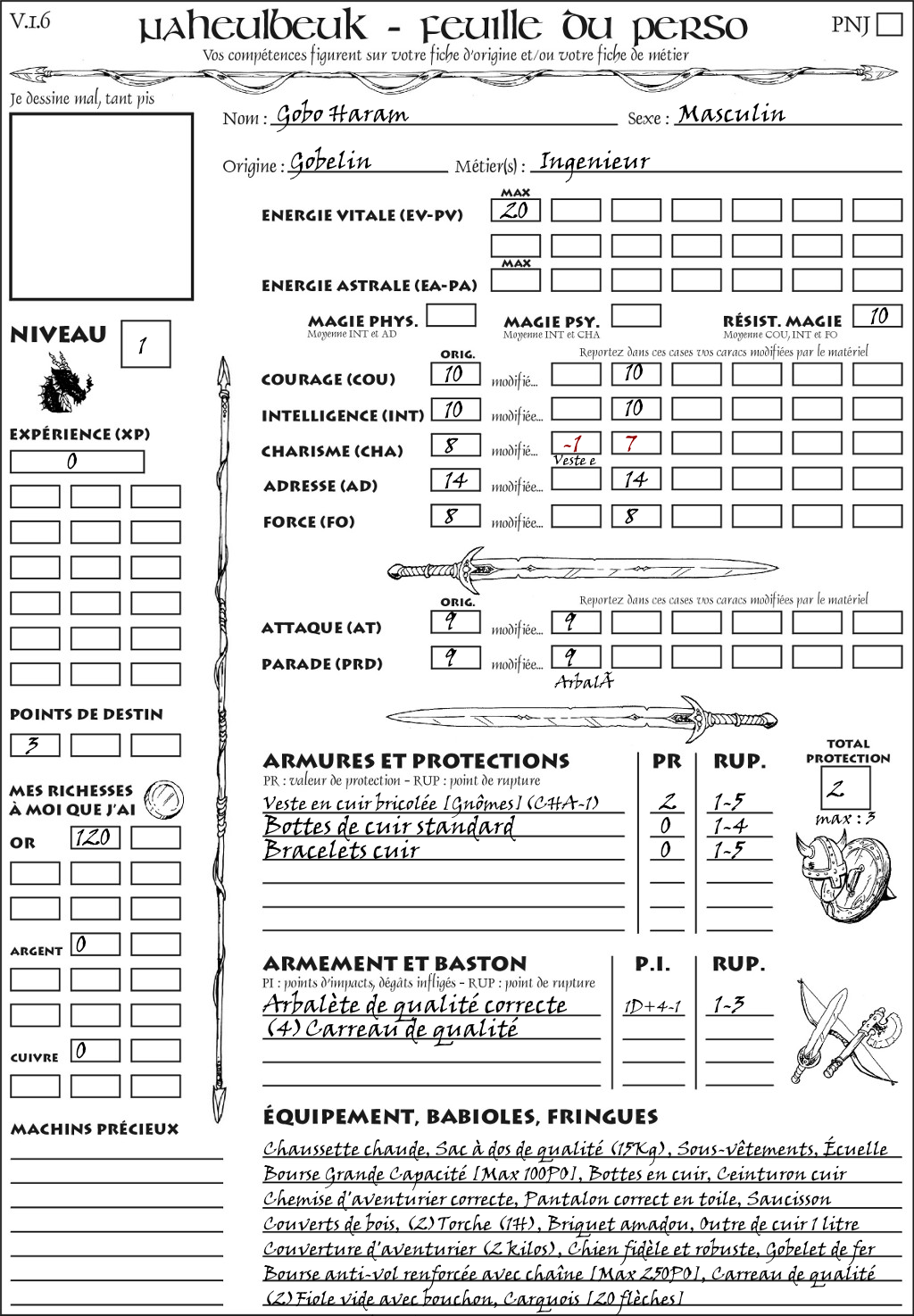 Fiche de personnage