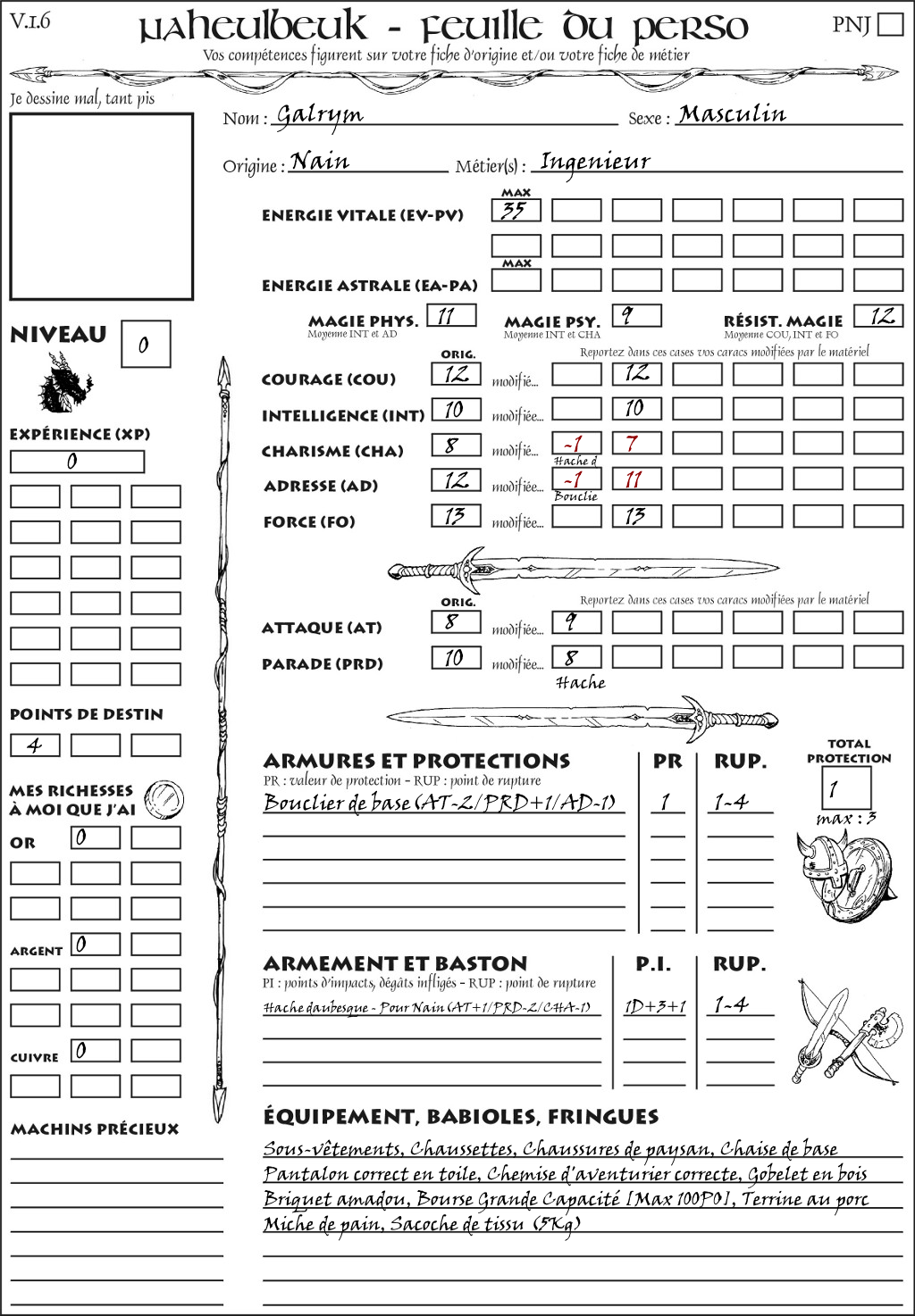 Fiche de personnage