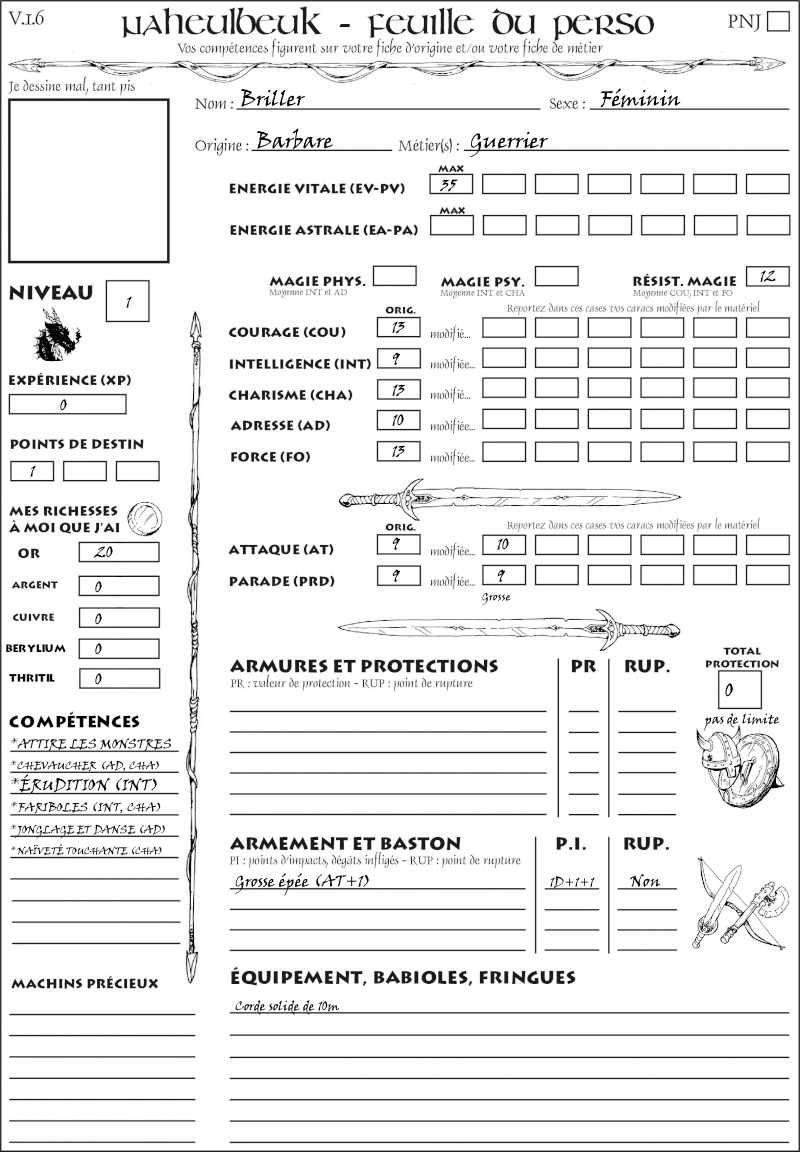 Fiche de personnage