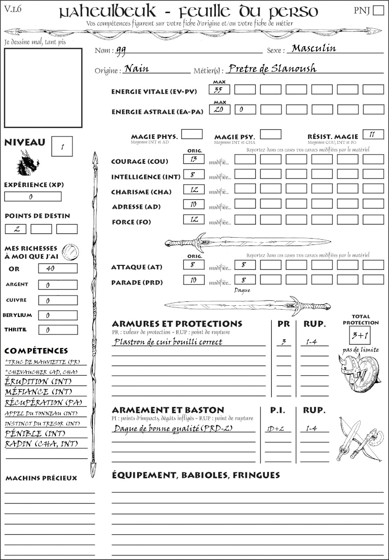 Fiche de personnage