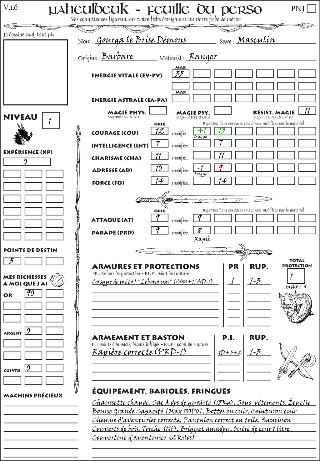 Fiche de personnage