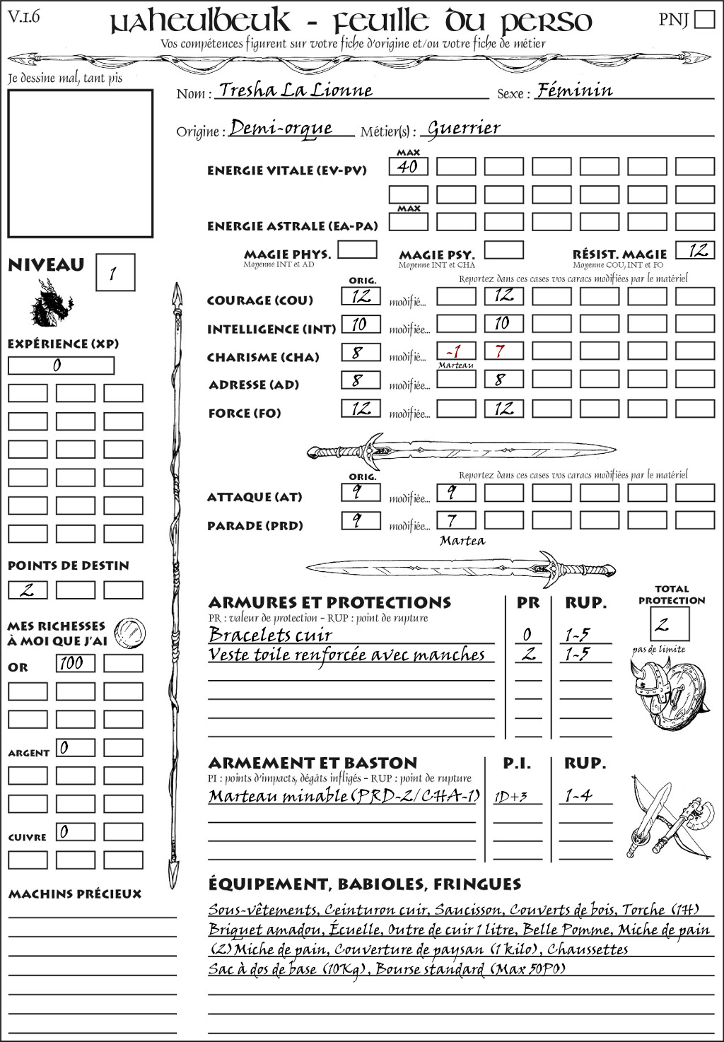 Fiche de personnage