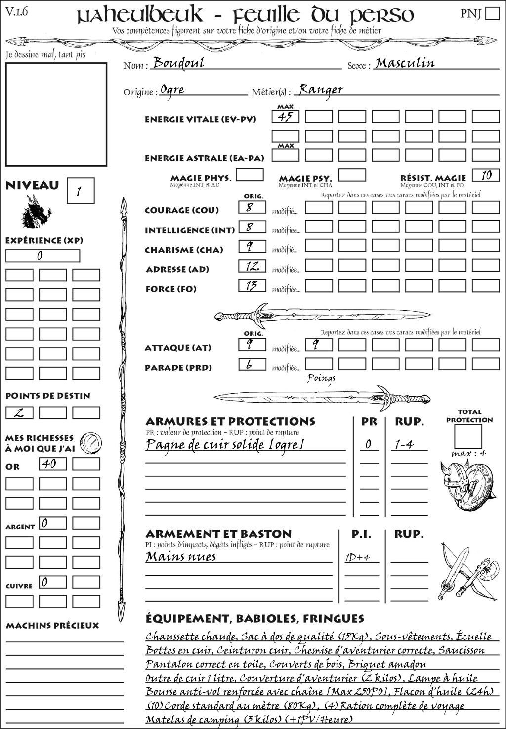 Fiche de personnage