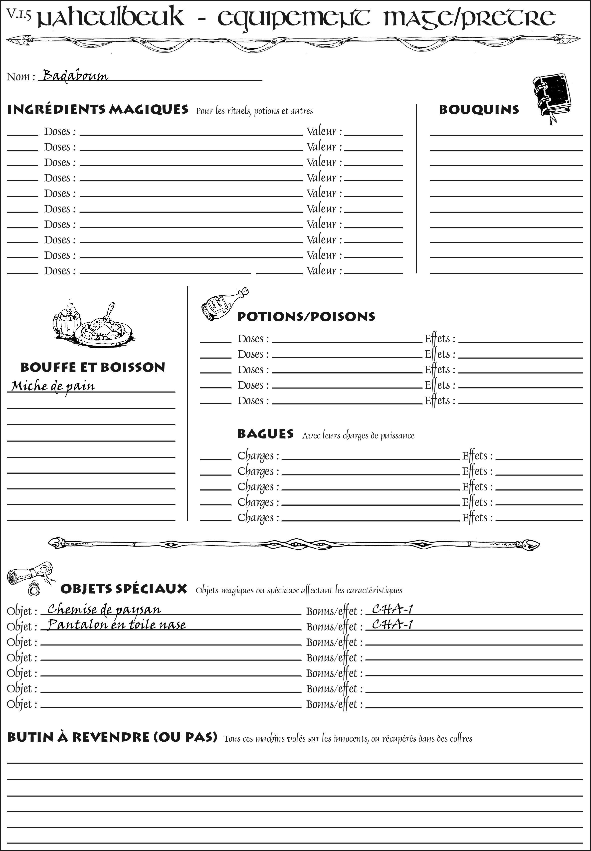 Fiche de personnage