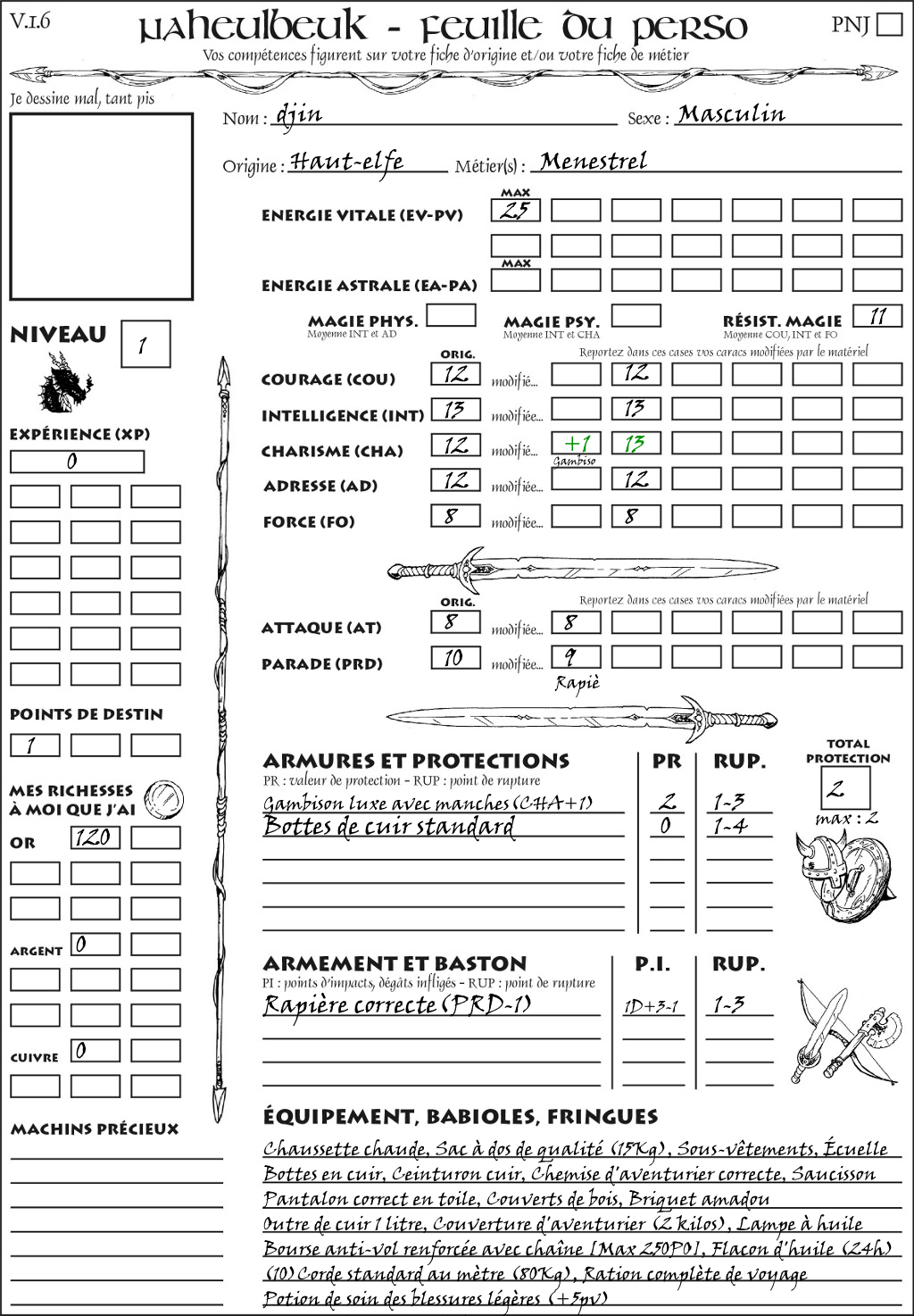 Fiche de personnage