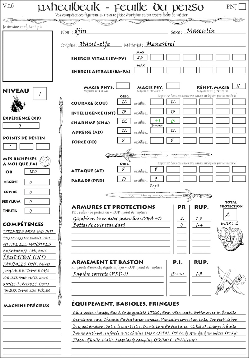 Fiche de personnage