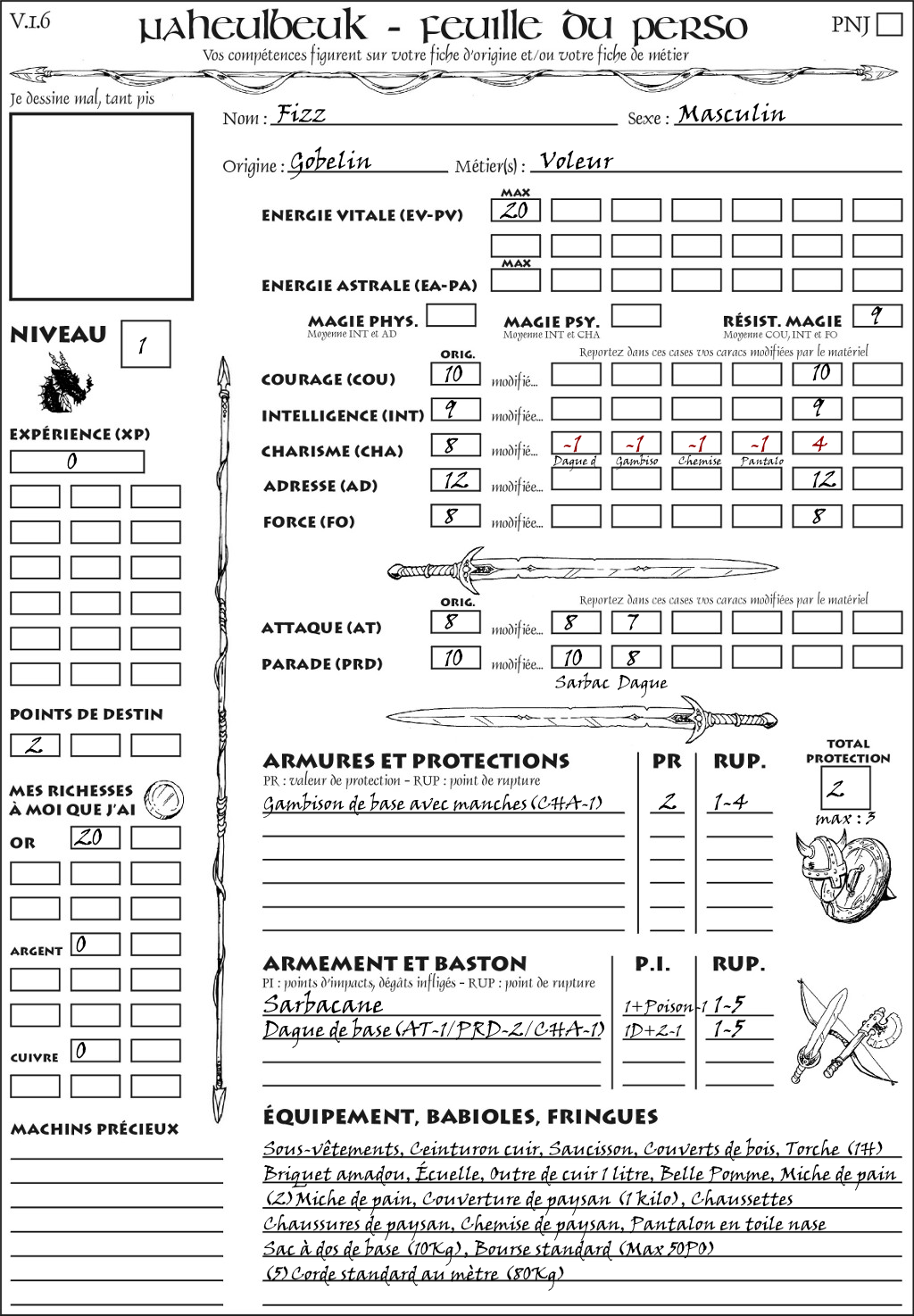 Fiche de personnage