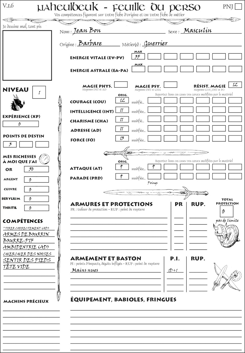 Fiche de personnage