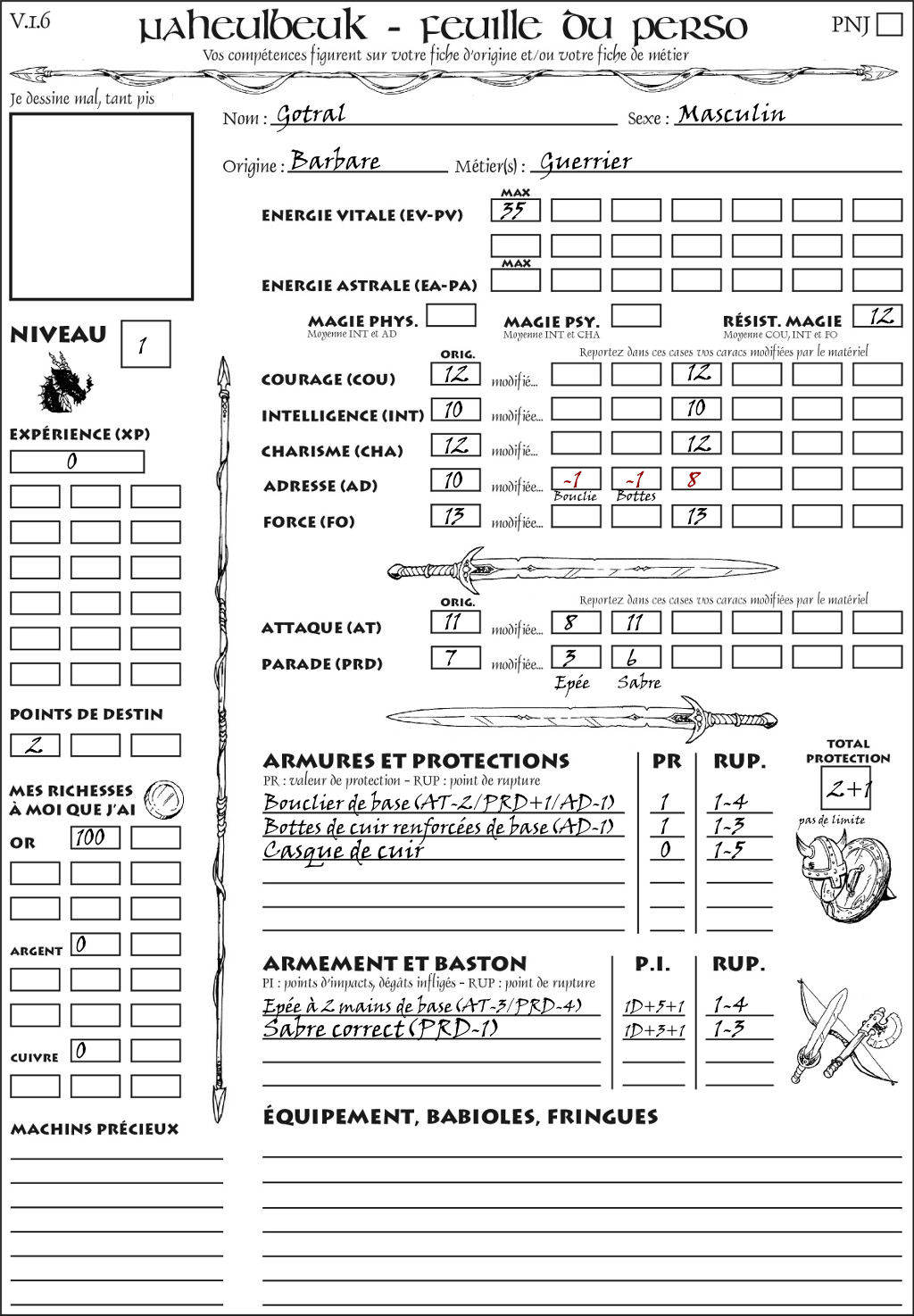 Fiche de personnage