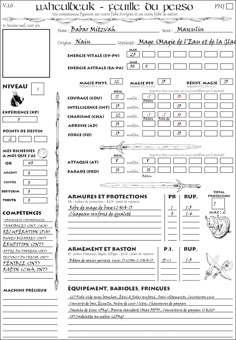 Fiche de personnage