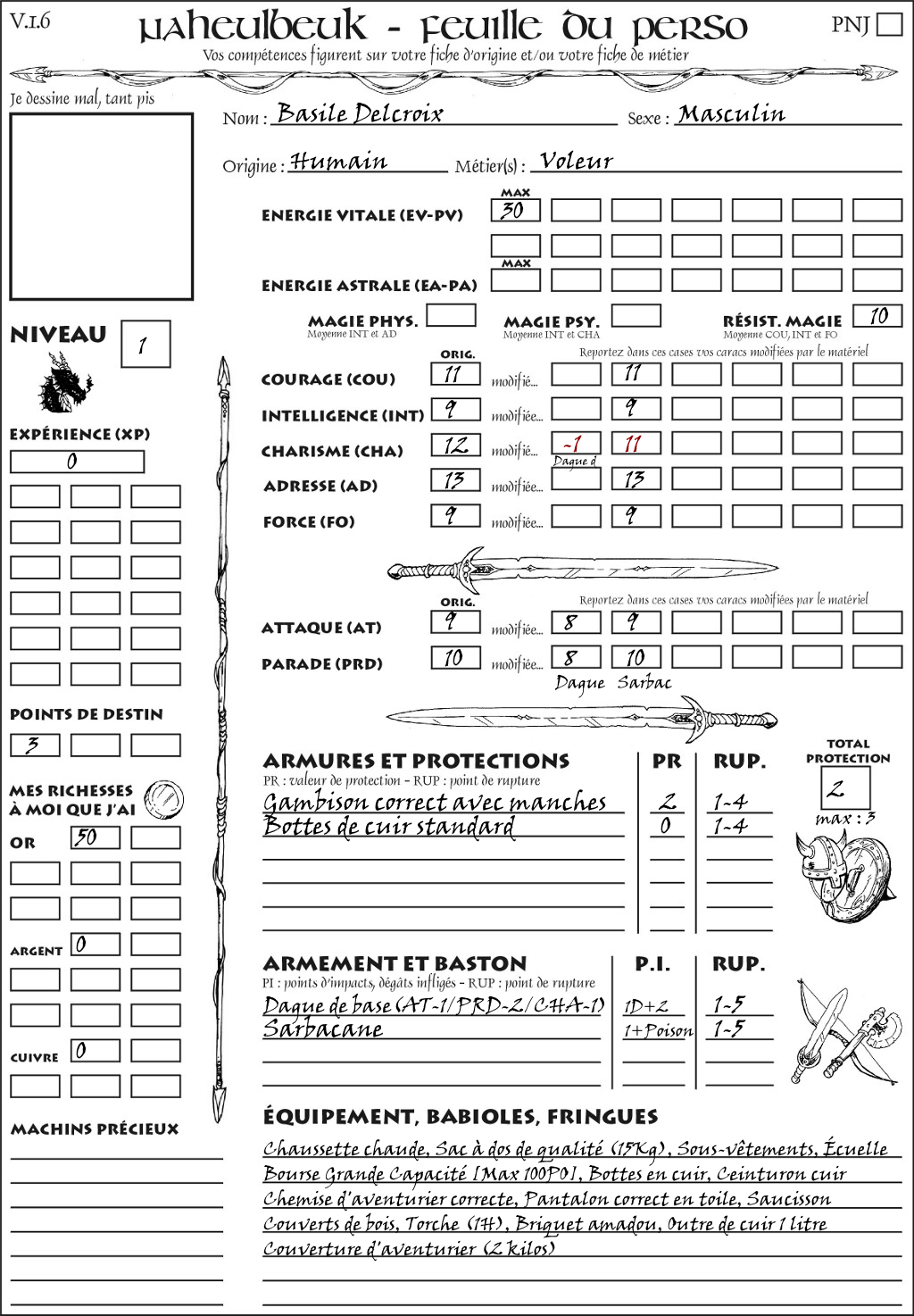 Fiche de personnage