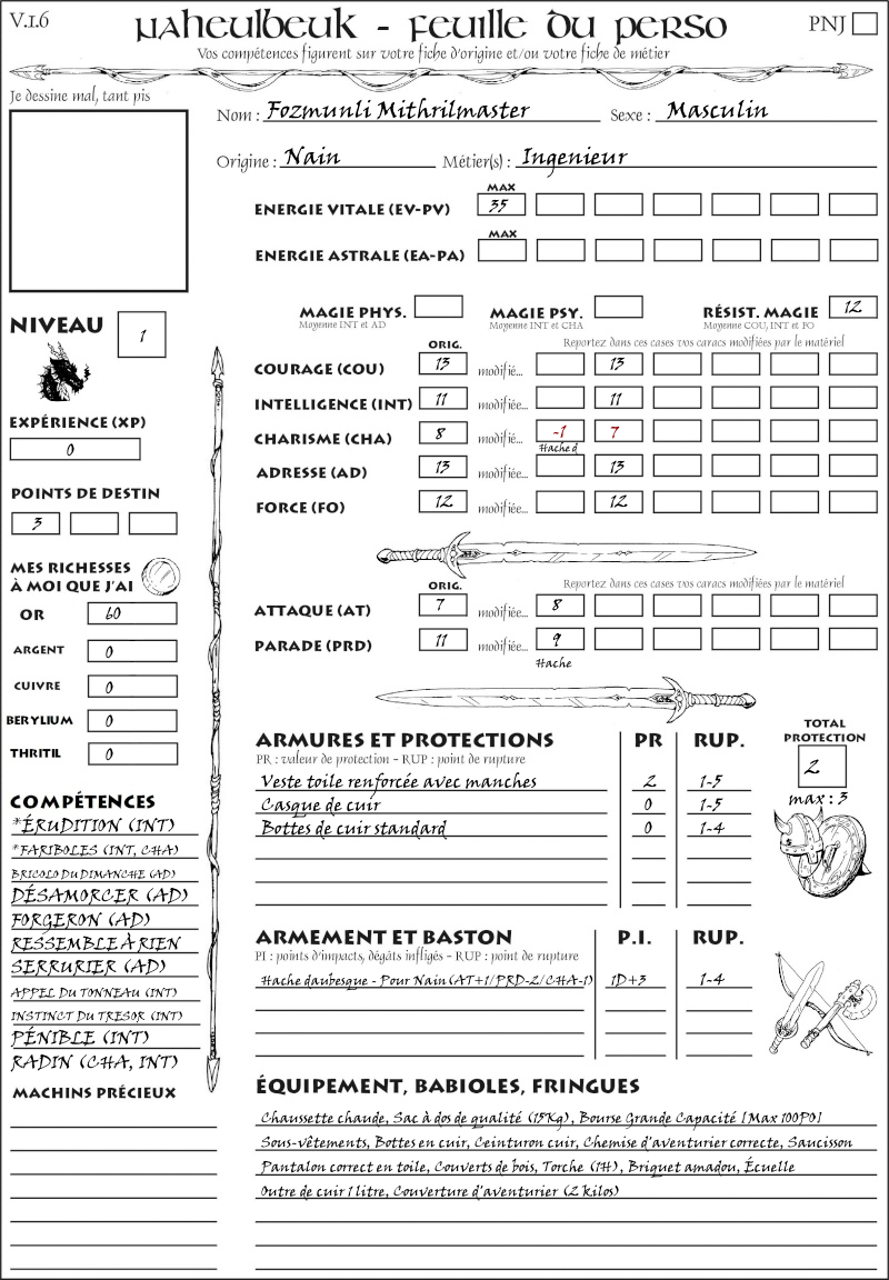 Fiche de personnage