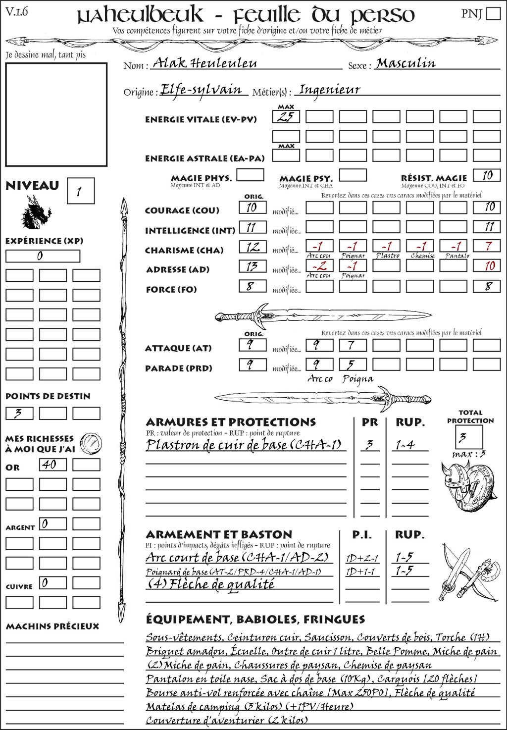 Fiche de personnage