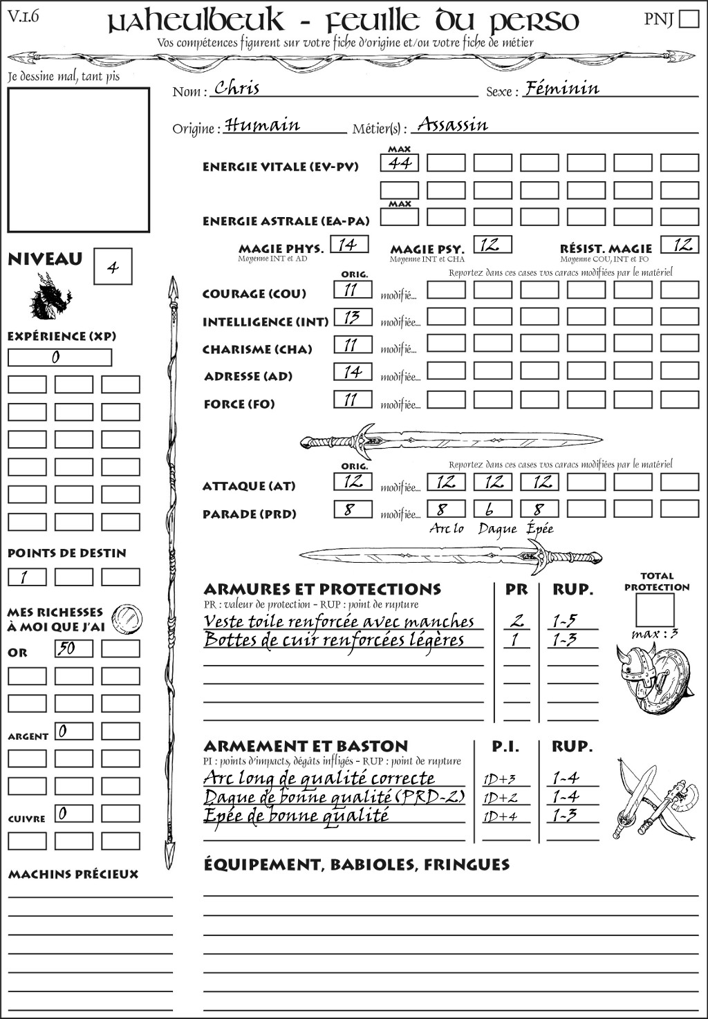 Fiche de personnage