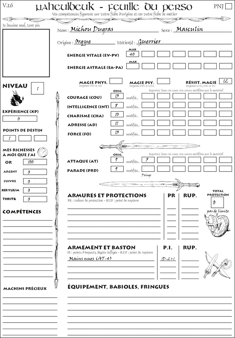 Fiche de personnage