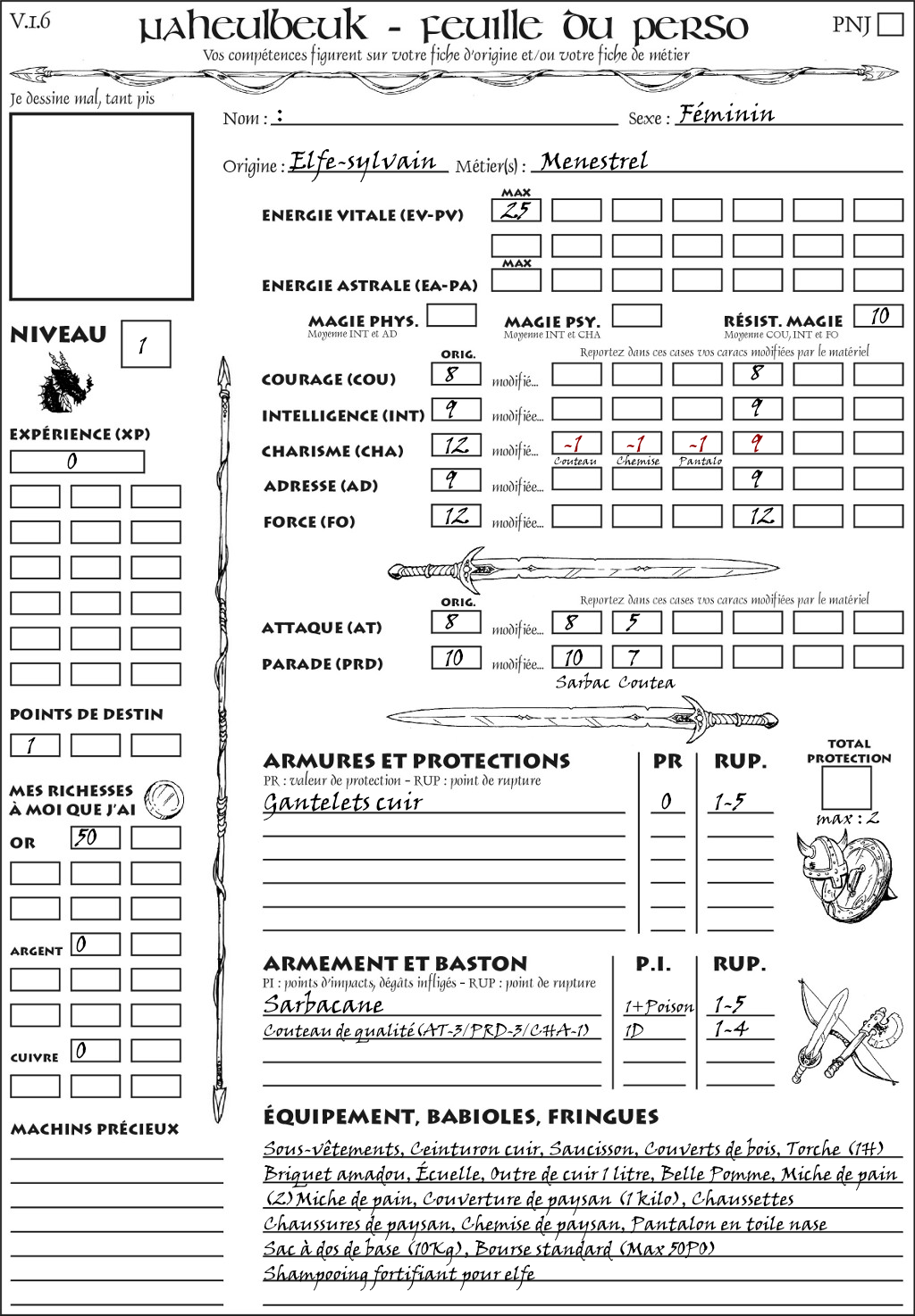 Fiche de personnage