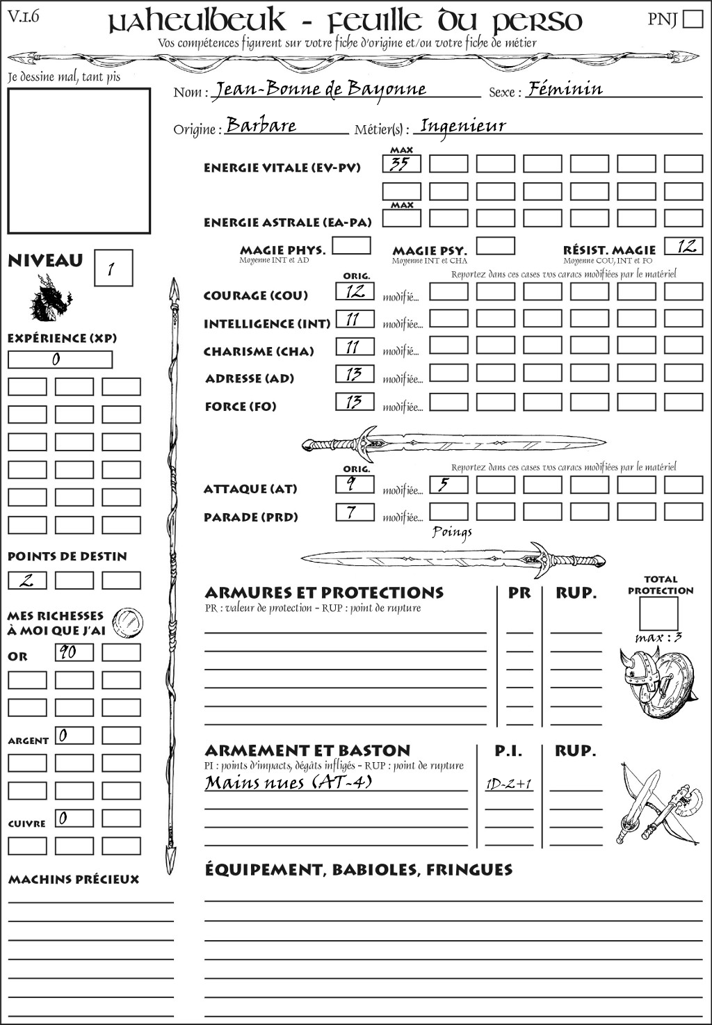 Fiche de personnage