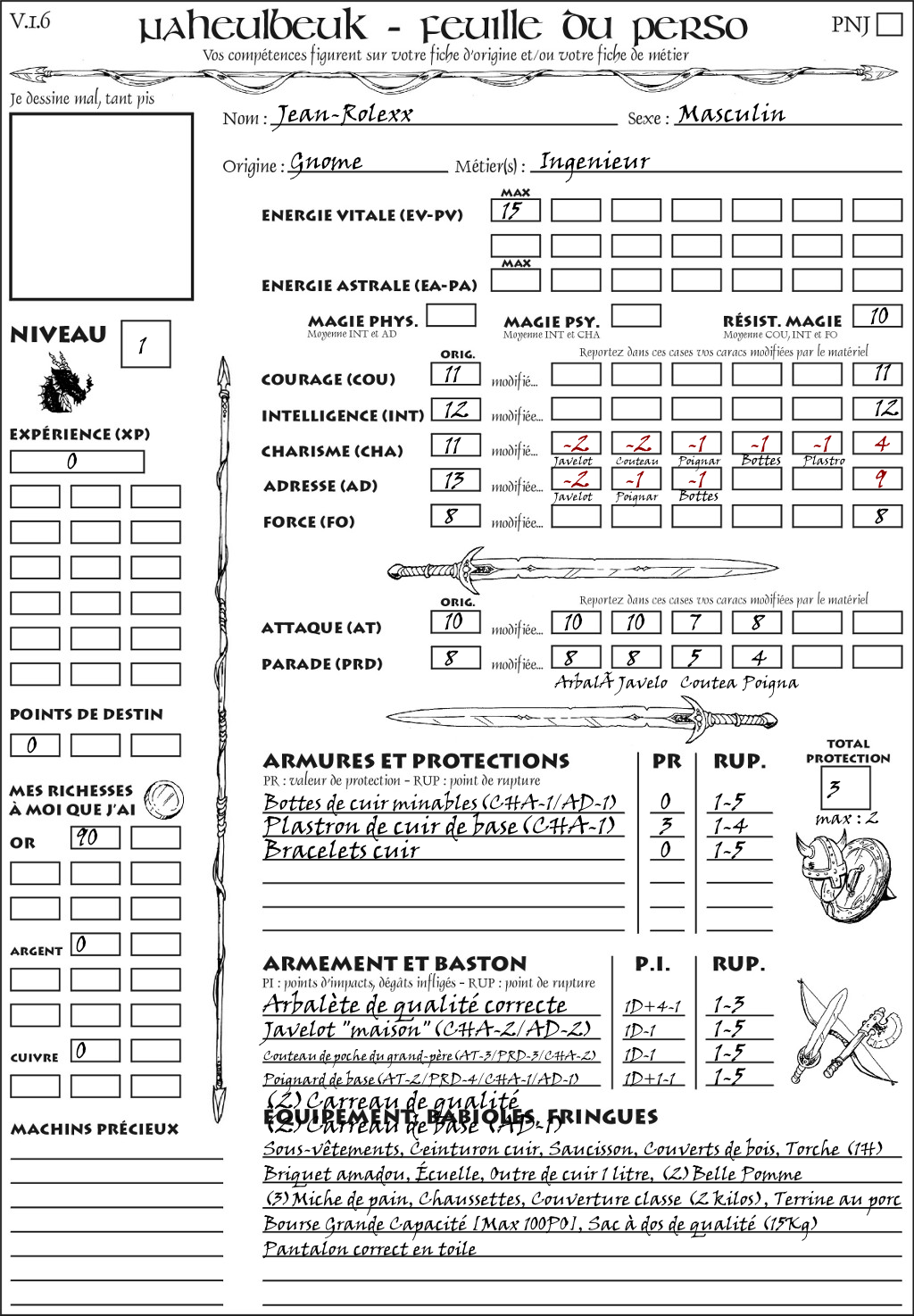 Fiche de personnage