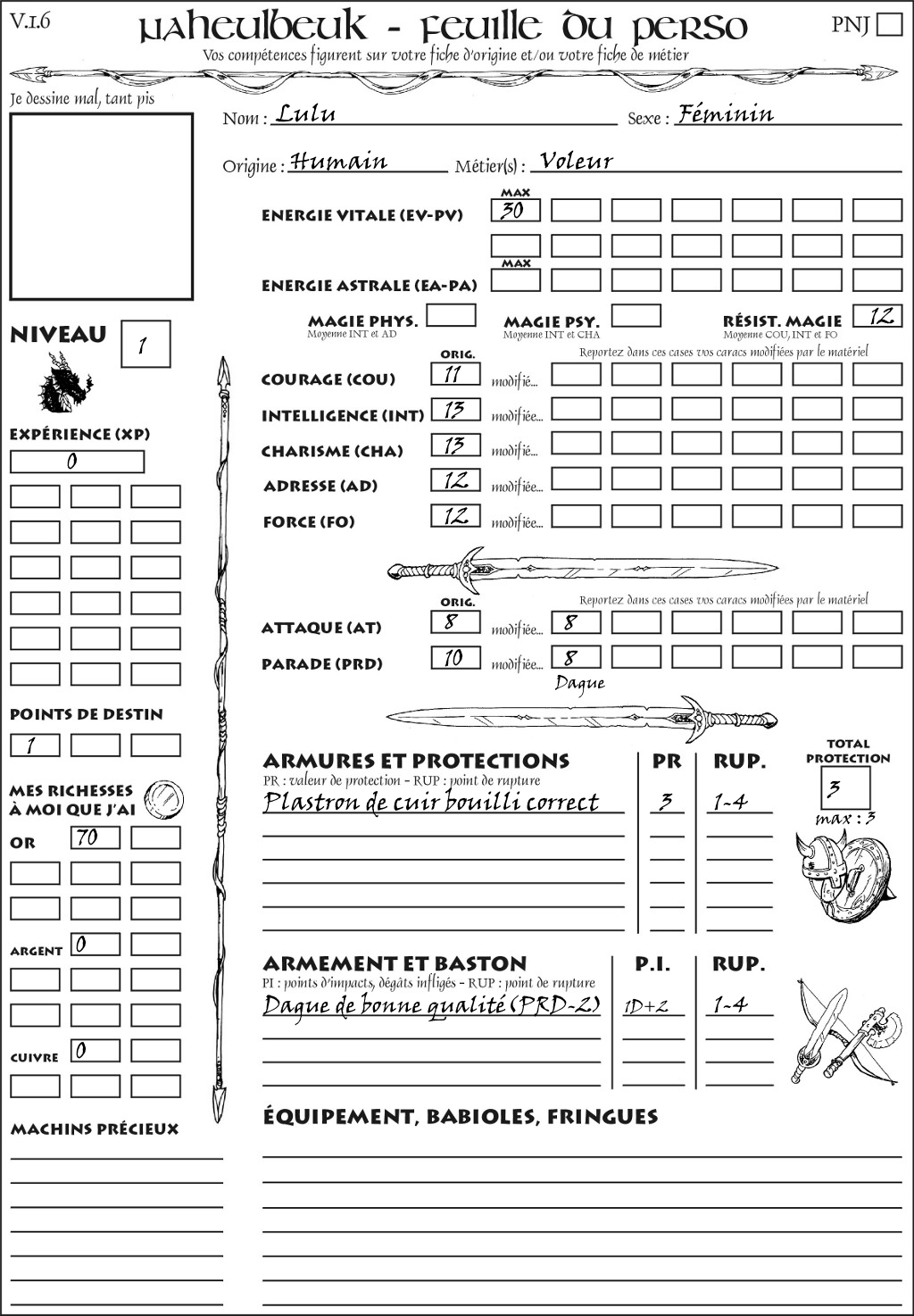 Fiche de personnage
