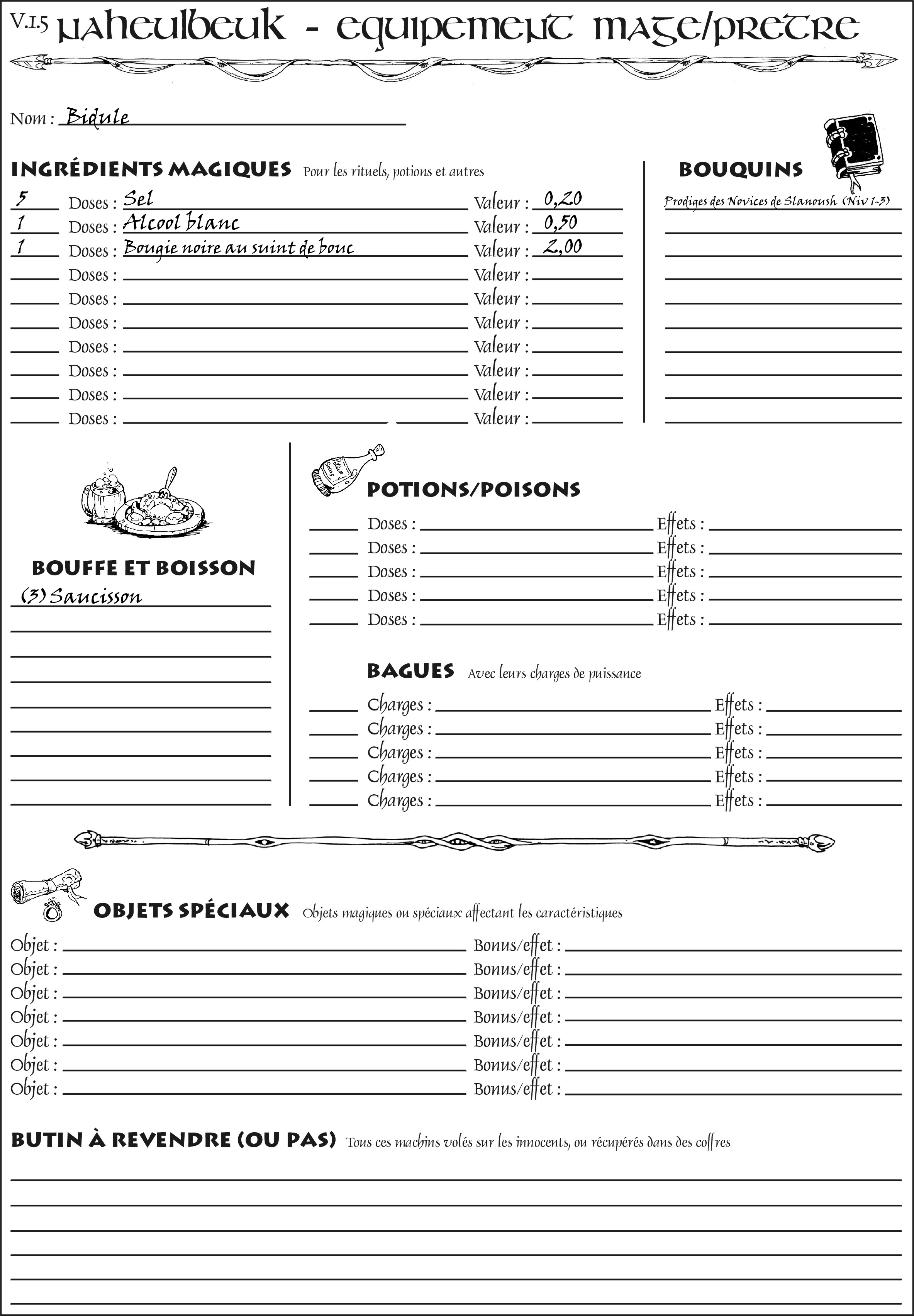 Fiche de personnage